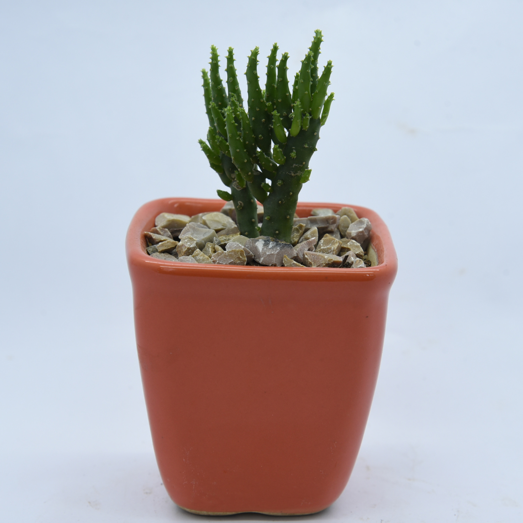 A striking Euphorbia Succulent with vertical stems, paired with a modern square terracotta pot. Perfect for minimalist spaces and easy to care for.