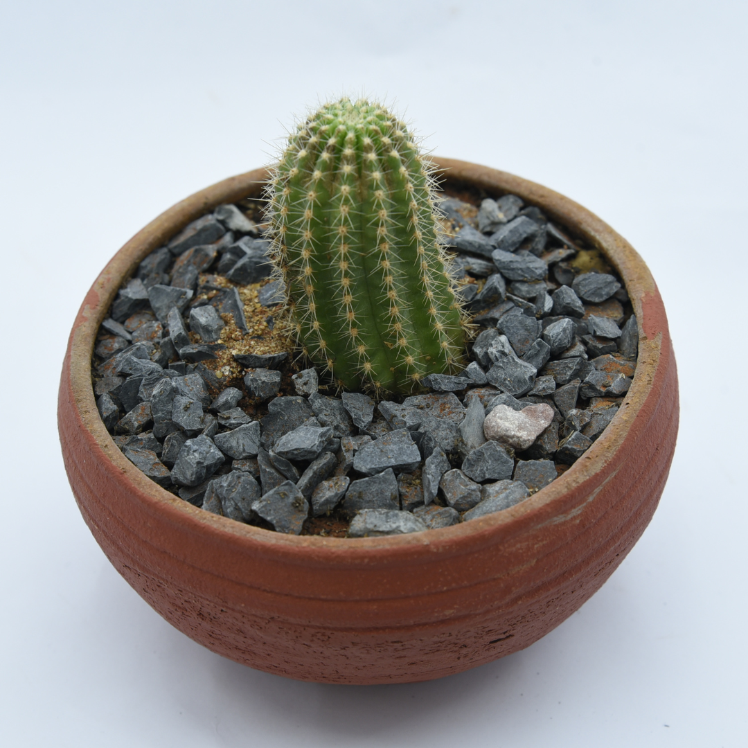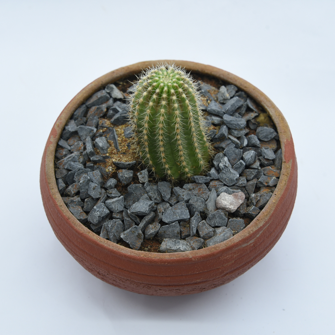 Golden Barrel Cactus in Rustic Clay Pot